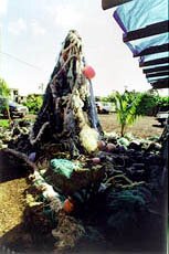 Deep Ecology Shop Growing frustration with the amount of marine debris we were able to easily collect on our regular beach cleanups, we decided to put this debris to good use. Instead of simply throwing it away, we created a frame to build on. This "Net Sculpture" continues to grow and serves once again to remind us of the ever-increasing problems our oceans are encountering. This monument to human waste has become a landmark in itself and people now stop to take pictures and look in awe at how much we have collected in such a short period of time. Our hope is in doing this we can raise awareness enough to get policies changed to decrease the problem and eventually eliminate it.