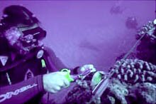 Makua Beach, West Side Oahu While conducting a tour of Makua dive site with customers, we found an approximately 100-150 ft long lay net which was recently abandoned. The net was in an area frequented daily by Hawaiian Spinner Dolphins and also home to Green Sea Turtles and countless reef fish. This net had anchored itself, as they typically do, by wrapping around coral heads. In this process many coral heads are ripped off the reef, destroying homes to many marine species. This job was too dangerous to conduct with customers. So the decision was made to return the following day. Upon returning the next day we released two crabs that had become entangled. I never like to leave these nets for fear that more life will be needlessly lost so I was glad that nothing had apparently died in the last 20 hours. Chris Barboza, Senior Instructor and myself would do the net removal while two safety divers observed. Darrel and Pete documented and observed while Chris and I went through the arduous task of removal. We nearly needed a second tank, as we were both very low on air by the time we had managed to walk this ghost net the 150 yards to shore along the bottom. We actually balled up the net as best we could, removed our fins, put the weight of the net on our backs and walked it in. Very slowly, I might add. After completing the removal I realized just how angry I felt that people simply abandoned nets. But at the same time, it felt good to know that we had made a difference. In real terms we had saved life, whether it was dolphins, turtles, reef fish, coral heads, etc. We undoubtedly had saved life. Little did we know that this was the beginning our formal "Direct Action Policy"